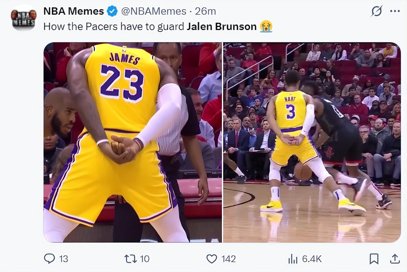 美媒嘲諷步行者防守布倫森都已經是當年湖人防守哈登的策略,都只能揹着手不然就要被布倫森造犯規,實際上布倫森首節7分2助攻沒有罰球。