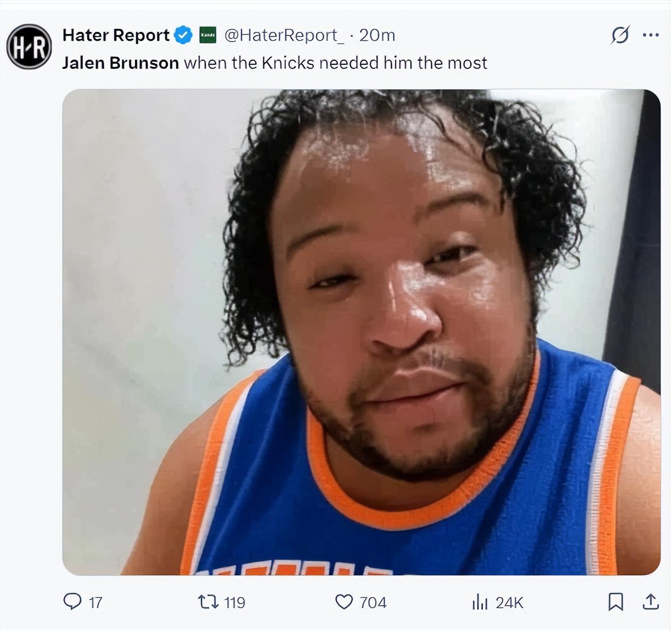 北京時間6月1日,東決G6,尼克斯以108-125慘敗步行者,大比分2-4出局。尼克斯的核心布倫森在最關鍵的一場比賽拉胯了,賽前美媒還在渲染他是艾弗森,結果他生死戰19分5失誤(東決唯一沒上20+),末節追分時刻只拿4分1失誤。
