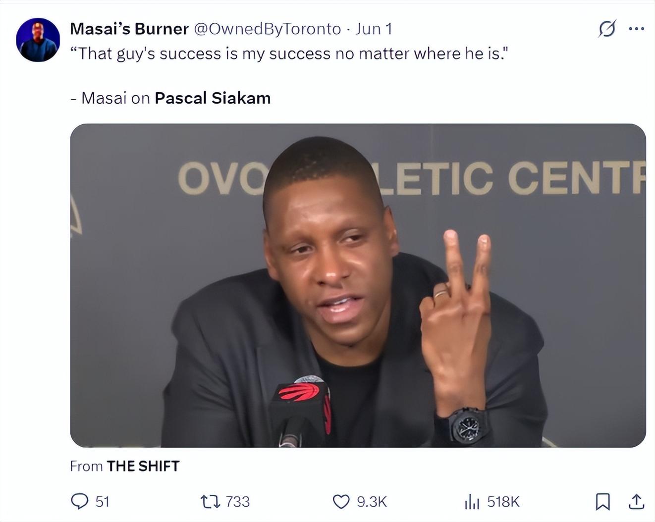 一天之前,帕斯卡爾-西亞卡姆在東決G6拿到31+的數據,西卡拿到了東決MVP,烏傑裏發聲:“我就知道,他在哪裏都能獲得成功”。(這已經非常打臉了)