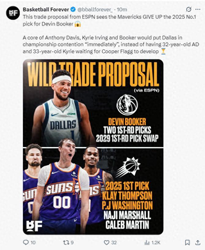 獨行俠得到:布克、2個未來首輪、2029年首輪互換權。