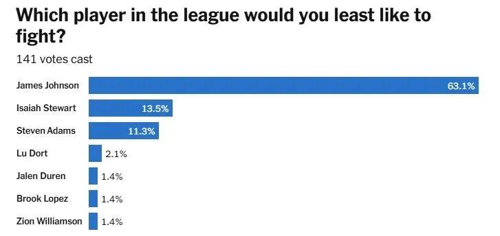 美國媒體前段時間曾策劃過一波匿名投票,話題是:你最不想和哪位球員打架?