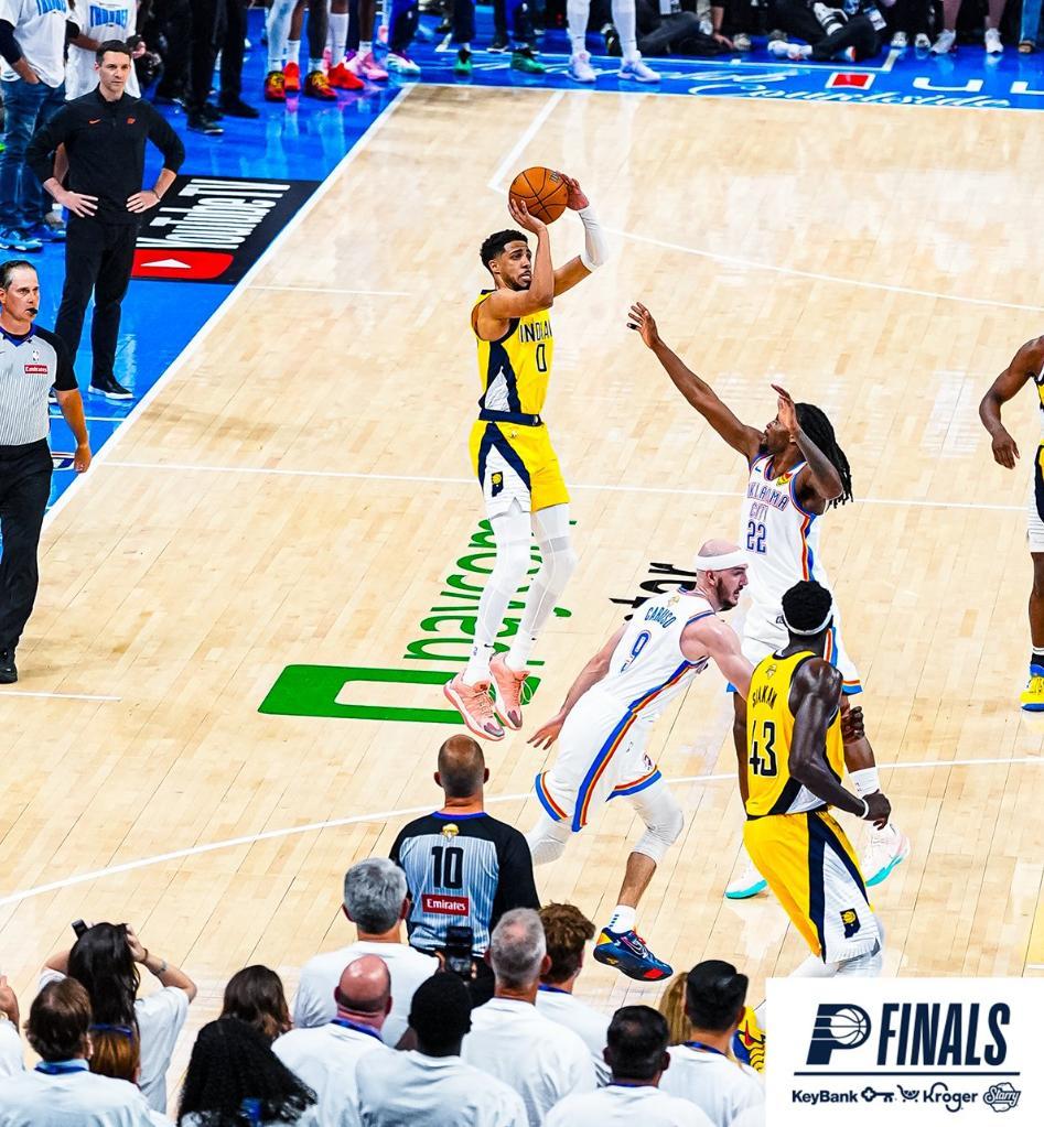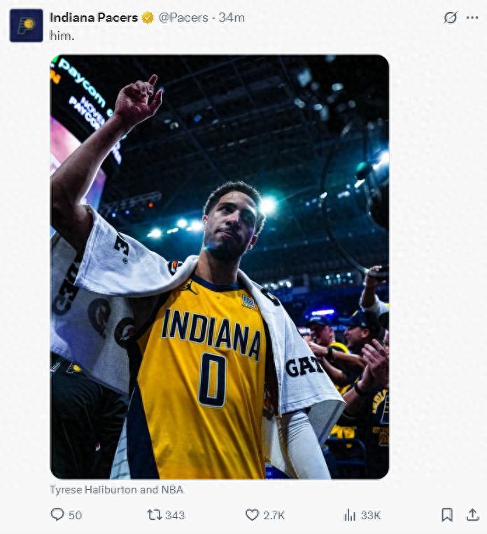 泰雷斯-哈利伯頓在進入球員通道時單手指天,他怒目圓瞪,因爲他知道系列賽纔剛剛開始。正如哈利伯頓所說:“系列賽很漫長,要贏下四場的球隊纔是總冠軍。”