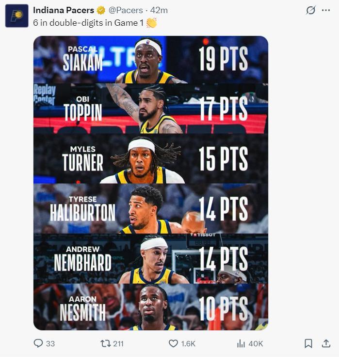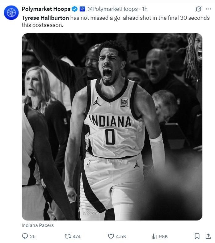 ESPN寫道:今年季後賽哈利伯頓在每一輪系列賽都有一場制勝球命中,他已經成爲真正的關鍵先生。