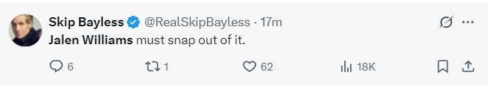 就連“金牌詹黑”斯利普-貝勒斯都寫道:傑威應該振作起來了。