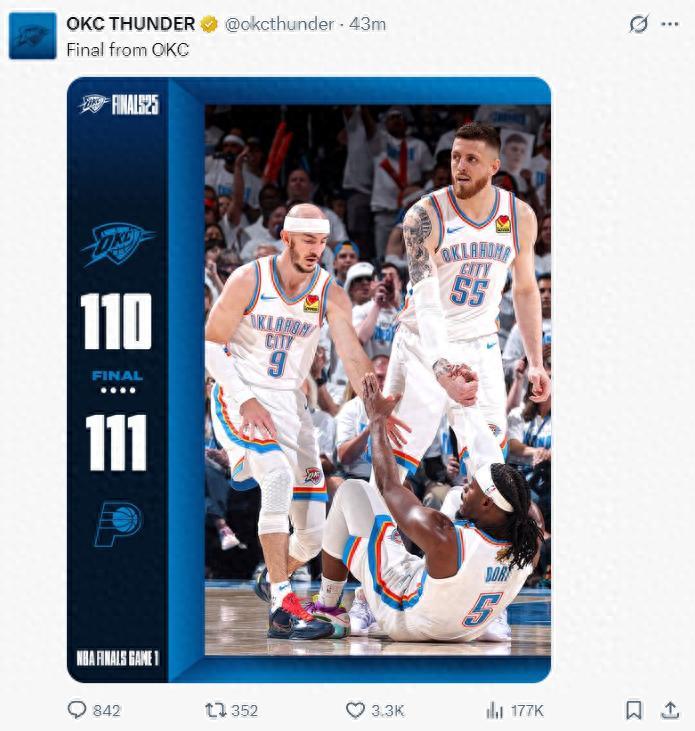 北京時間6月6日,NBA總決賽,雷霆以110-111被步行者逆轉,大比分0-1落後。這場比賽傑威前三節12中3,末節開場三分鐘有點復甦的跡象隨後又陷入沉寂,全場比賽19中6+三分4中1,而且丟了最關鍵的兩次進攻,最終他淪爲罪人。
