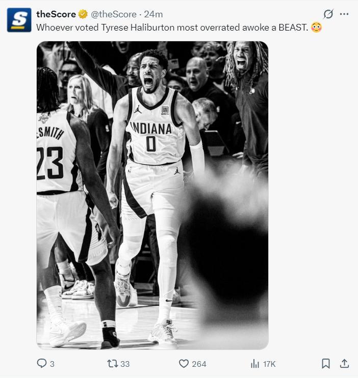 美媒:這是編劇也編不出來的,哈利伯頓帶領在末節完成了大逆轉。