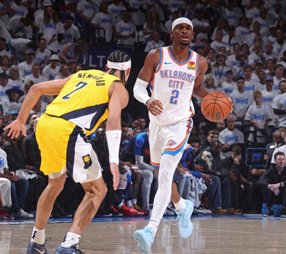 末節SGA還在休息雷霆打出9-3拉開到15分打停卡萊爾。暫停後步行者回應了一波15-4直接縮小到4分,SGA與傑威兩人連續突破漲分穩定戰局,SGA被哈利伯頓撂倒繼續罰球,步行者兩個三分縮小到3分,SGA造犯規失敗西卡籃下縮小到1分,SGA關鍵中投不進,哈利伯頓0.3秒準絕殺成功。