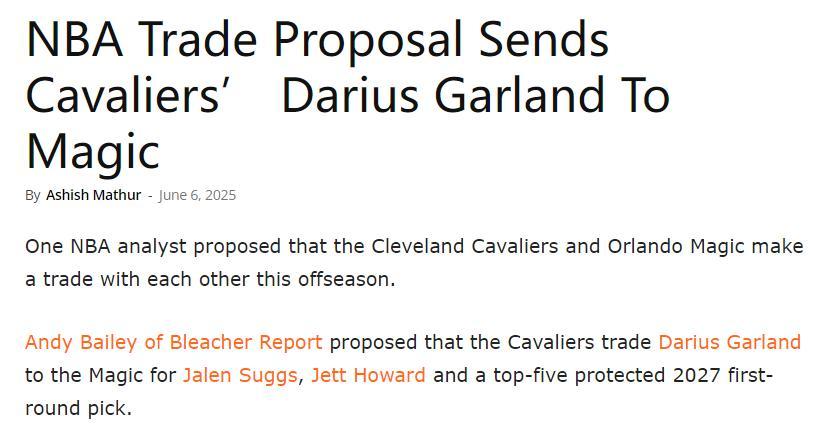 北京時間6月7日,薩姆-阿米克再度發文加蘭可能被交易到魔術隊,這次另一美媒BR也給出了模擬方案。