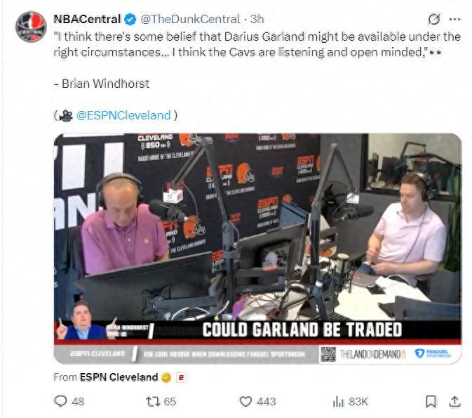 北京時間6月7日,EPNS記者布萊恩-文霍斯特報道,我覺得在合適的時候克利夫蘭騎士會交易加蘭,現在騎士隊正在聆聽加蘭的報價,並且保持開放的態度。