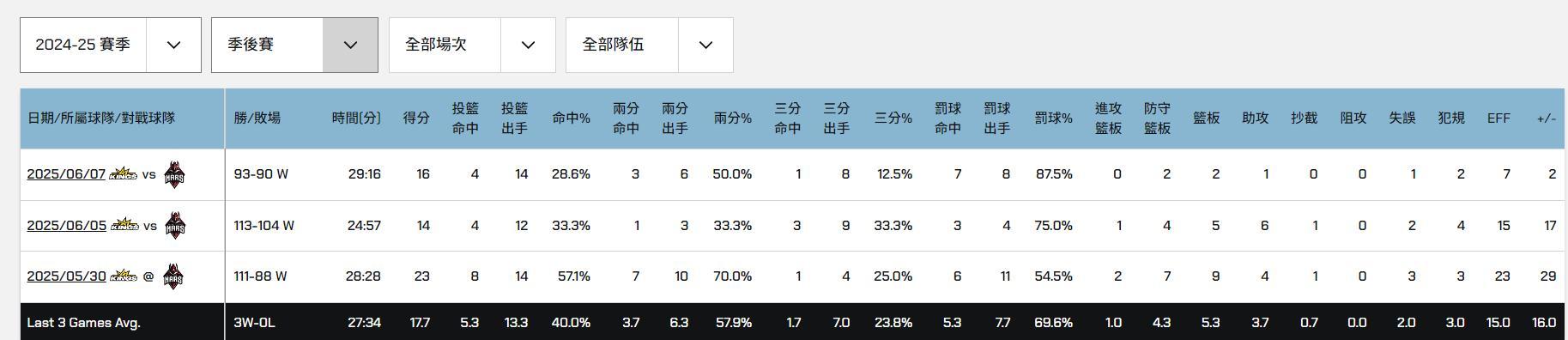 林書豪這輪系列賽四場比賽得分都上雙,但只有一場命中率超過五成,那就是G1拿到23分(14中8+三分4中1)。