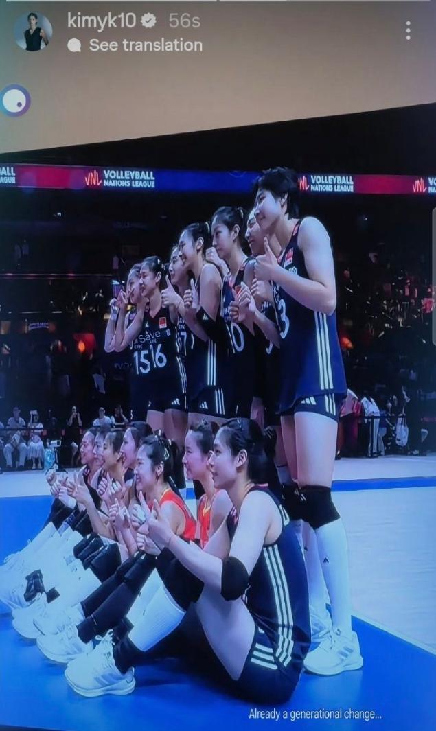 金軟景在個人的INS寫道:中國女排似乎已經完成了她們的迭代。