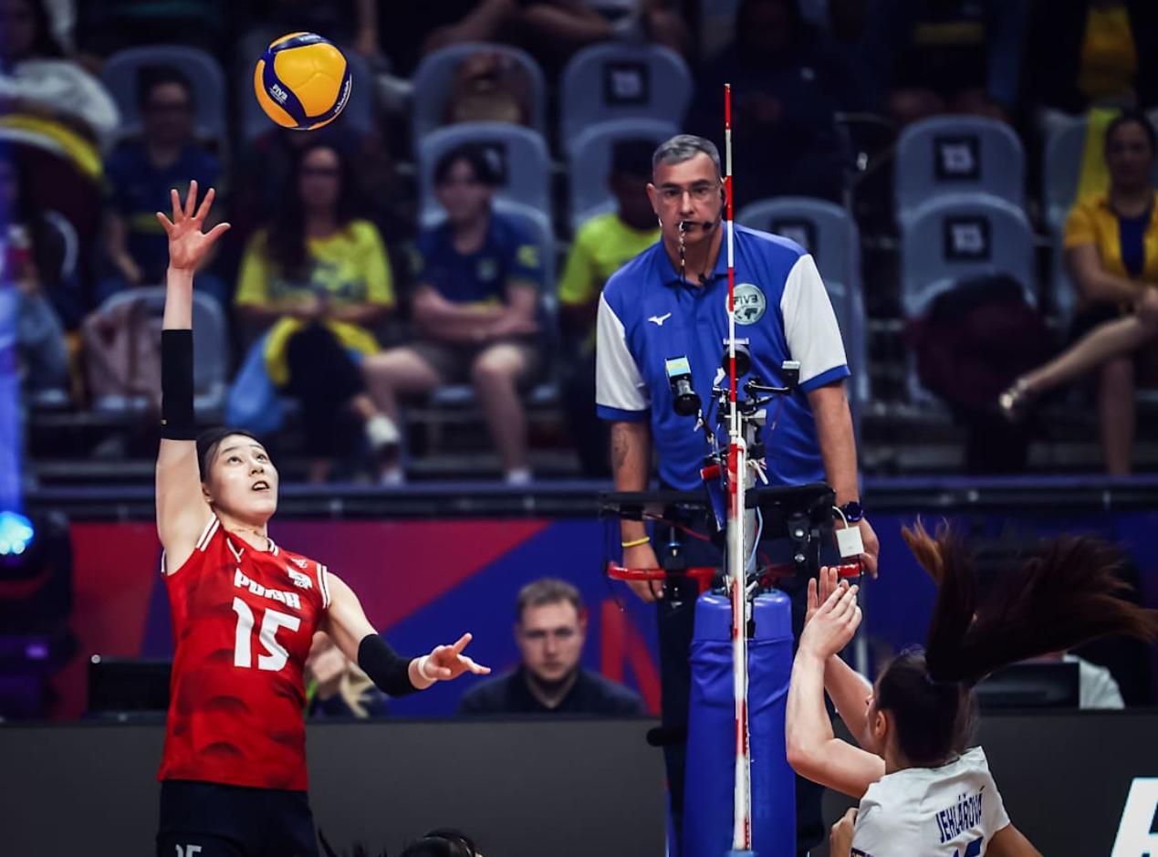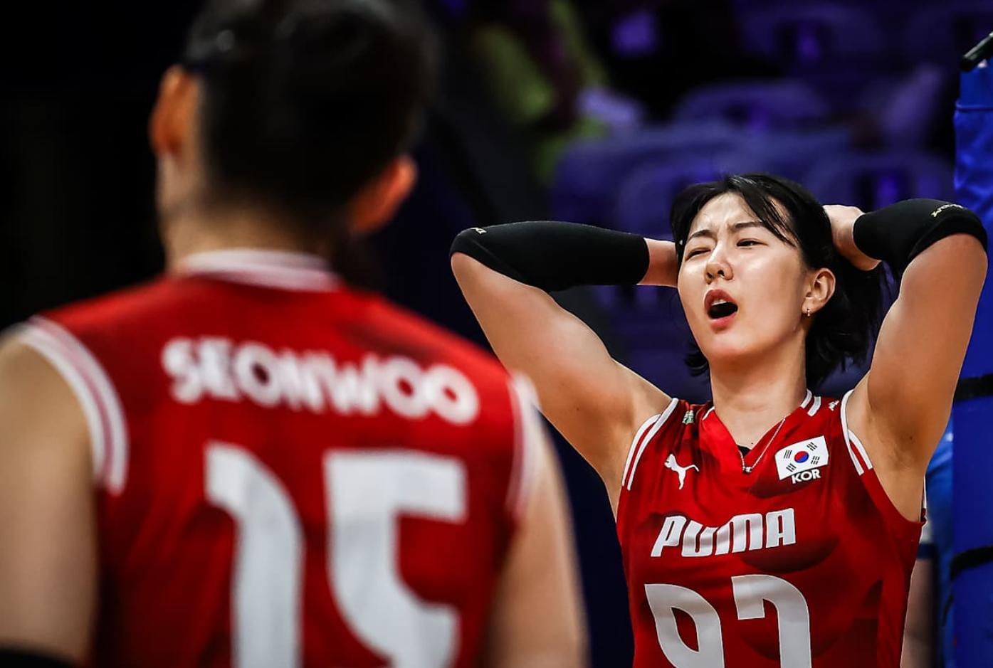 韓國隊的核心姜昭輝此役付出一起,她全場比賽62扣16中+1攔+6失誤被攔,拿到17分,扣球成功率25.8%,她賽後的抱頭沮喪,不知道她是對自己的進攻效率不滿意還是對這支球隊的配置不滿意,她瘋狂扣球62次已經說明球隊根本沒有什麼進攻支持。