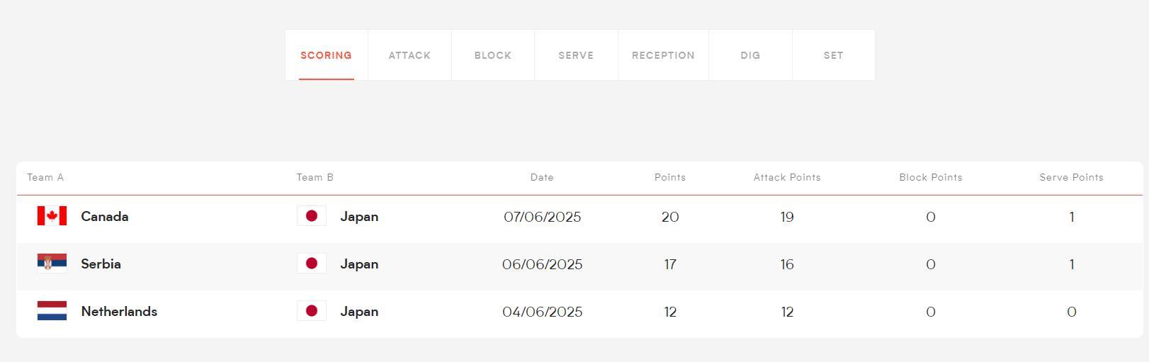 日本女排也因爲三連勝未丟一局已經升至世聯賽積分榜的第一位,憑藉石川真佑 - 佐藤淑乃 - 和田由紀子三叉戟的進攻核心,全新的日本女排勢頭很猛烈。