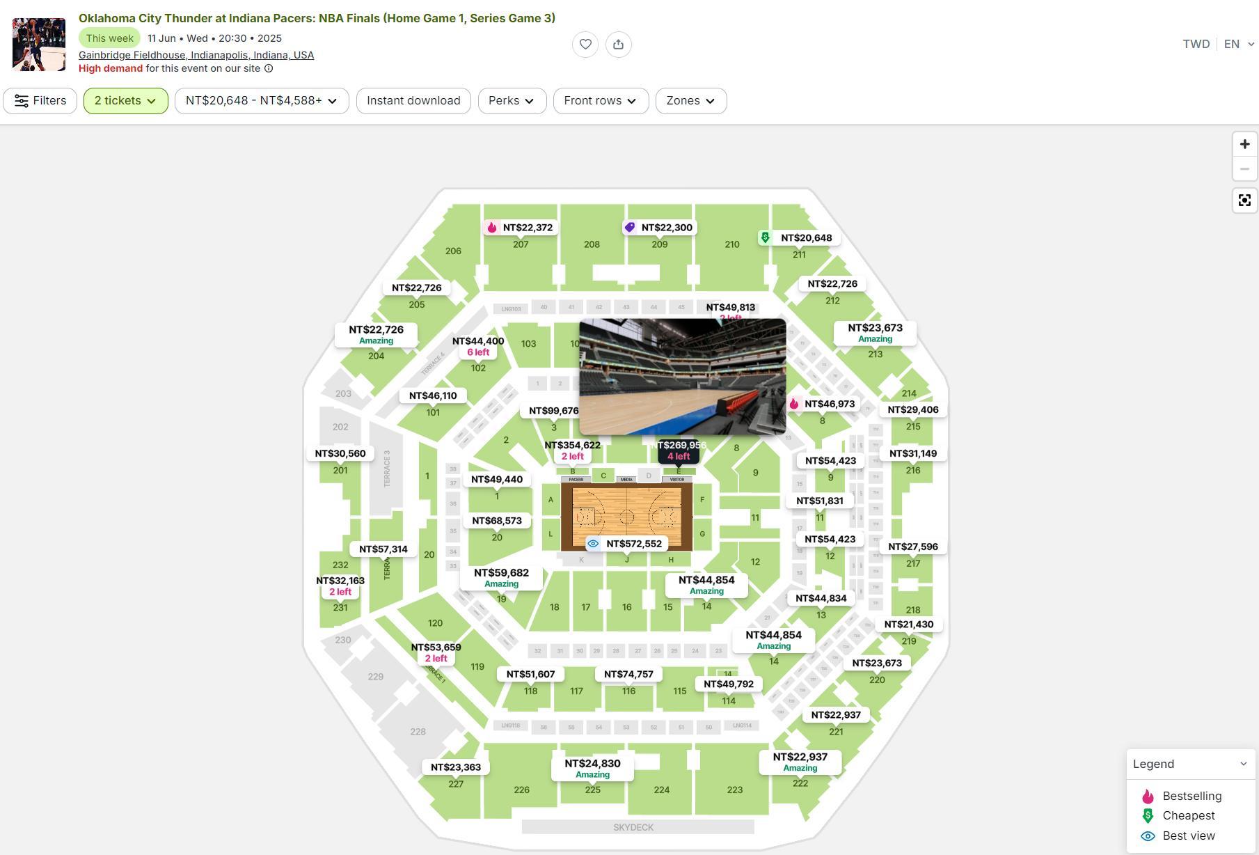 沒想到這場G2戴姆波特還是沒有換先發,他還是讓哈騰打替補,用華萊士打先發,也就是1大4小的陣容,而且因爲這是關鍵的G2,雷霆的門票也被黃牛炒出了高價,最貴的VIP場邊票高達35.4萬一張,有兩個VIP包廂都超過了26萬美元。