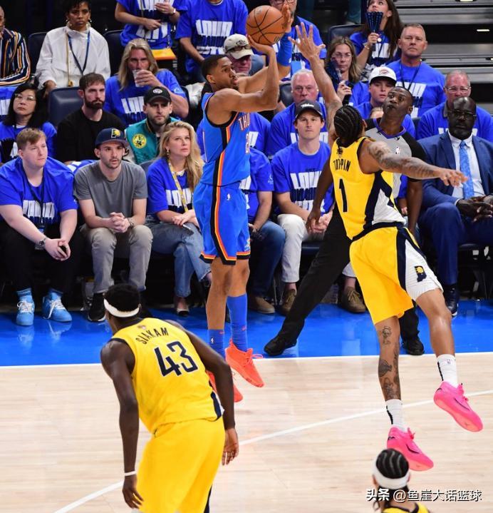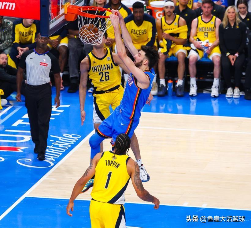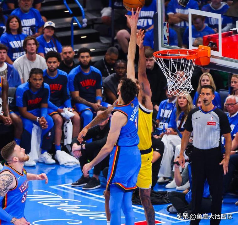 步行者雖然在這場比賽中控制住了失誤,可是這次步行者卻沒有能夠在籃板球上佔據優勢,而且比起G1比賽步行者的外線三分狀態也不是那樣好,更讓步行者所被動的是西亞卡姆在比賽中打得拉胯,要知道這輪系列賽西亞卡姆是有着錯位優勢,可惜在這場比賽中西亞卡姆卻沒有打出這樣的狀態,加上特納也沒有上場比賽的神奇表現,哈利伯頓在比賽中也沒有爆發表現,所以這場比賽步行者一直被雷霆穩穩壓制。全場比賽結束哈利伯頓13中7得到了17分3籃板6助攻的數據,西亞卡姆11中3得到了15分7籃板4助攻的數據,特納得到了16分4籃板4助攻的數據。