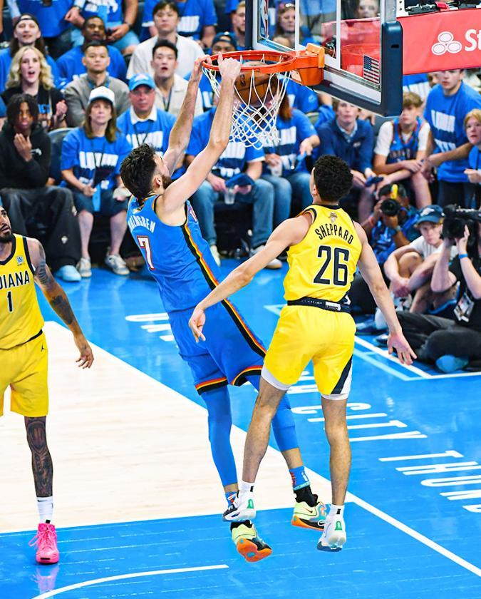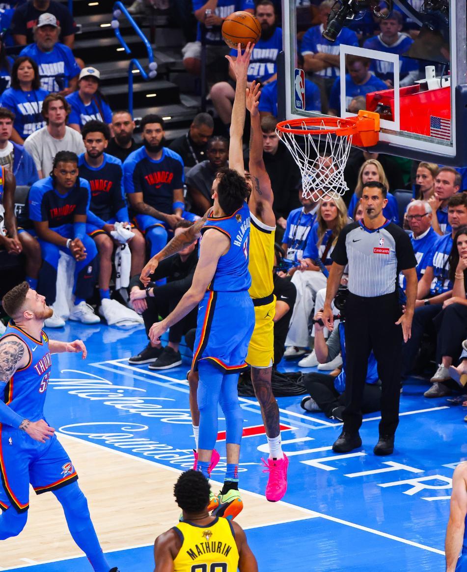 北京時間6月9日,總決賽G2,雷霆以123-107擊敗步行者,大比分1-1扳平。這場比賽霍姆格倫算是掃去G1的陰霾,他在首節成爲球隊打破僵局的那把尖刀,防守端他在籃下的威懾力也十分恐怖 ,最終全場拿到15分6籃板1蓋帽幫助球隊拿下勝利。