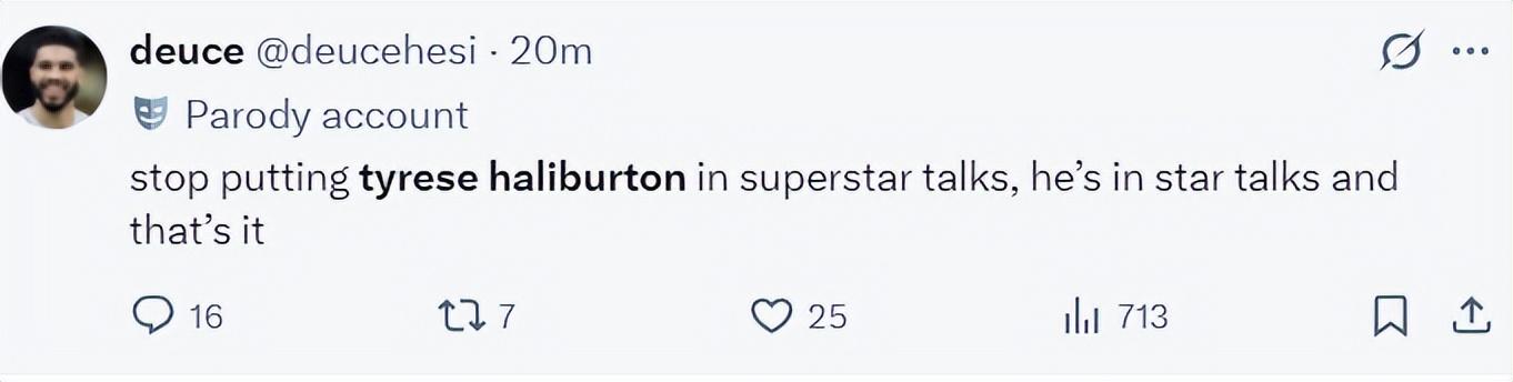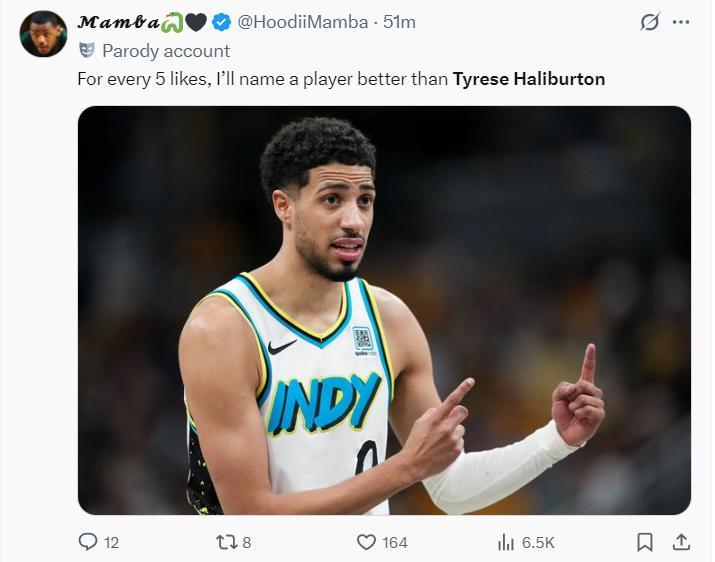 美媒:只要點5個讚我就能說出一個比哈利伯頓更好的球員。