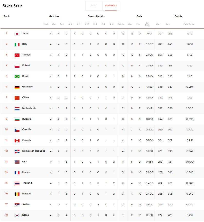 根據世聯賽的規定,三週比賽後除了波蘭外的前七名進入總決賽,而最後一名將直接降級,明年無法亮相世聯賽。