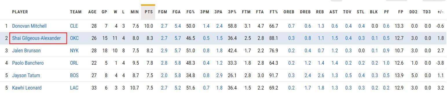 今年季後賽末節SGA已經拿到124分排在第二位,布倫森147分是第一,總決賽打完SGA在這項數據上應該也會封王。