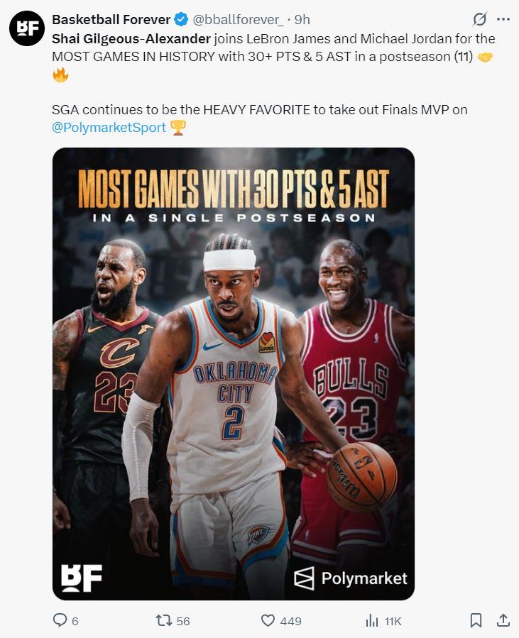8.今年季後賽SGA11次30+5助攻比肩詹姆斯、喬丹;