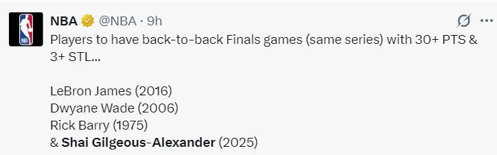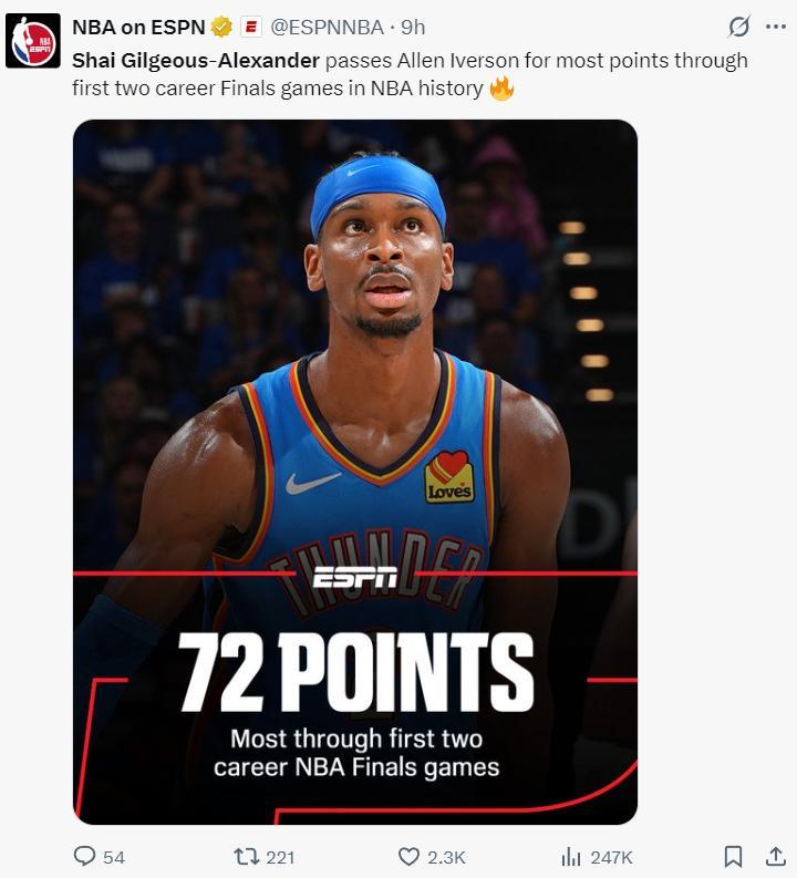 3.SGA總決賽前兩場72分也是NBA歷史新高;
