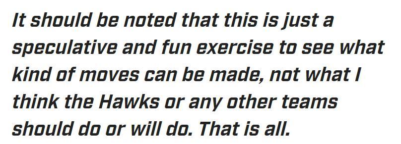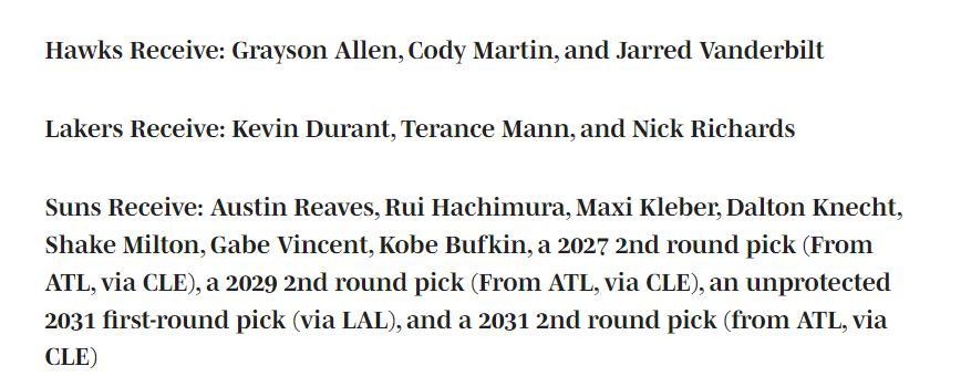 考瓦德在文中也寫道:需要注意的是,這是隻是一個投機與有趣的建議,看看接下來這些球隊會做什麼,我不認爲老鷹或其他球隊應該成爲湖人、太陽的第三方。