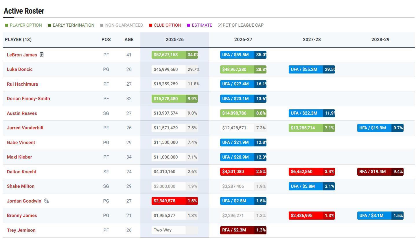 這套陣容組建後,25-26賽季就等於是湖人未來幾年最後一個奪冠窗口期,因爲KD合同也只剩下一年,爲了41歲的勒布朗最後一搏?