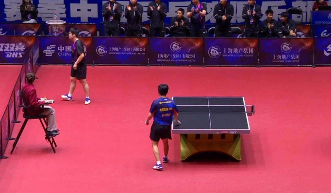 第二局樊振東加強了主動上手,樊振東將林詩棟拉入了自己的節奏中,樊振東7-6領先後林詩棟叫暫停,隨後樊振東連續拿分10-6,最終樊振東11-7扳平大比分。
