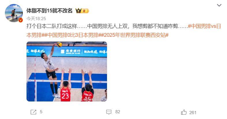賽後大V直言:打個日本二隊打成這樣,中國男排無人上雙,我想剪都不知道咋剪。