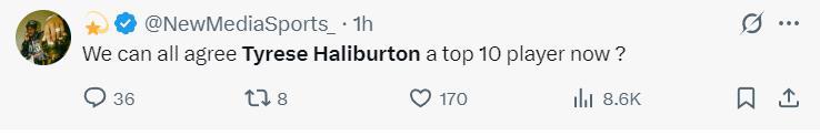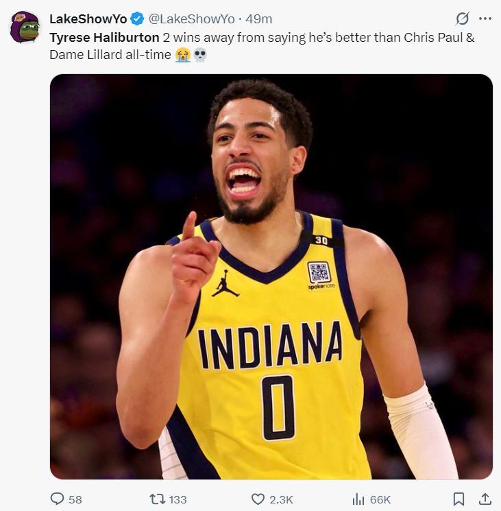 湖媒:哈利伯頓在總決賽拿到兩場勝利,他已經比保羅、利拉德更強了。