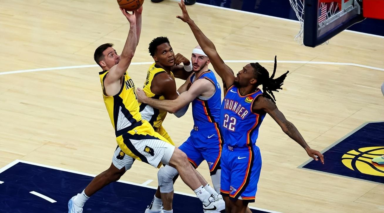 25年之後重返總決賽,印第安納的球迷非常熱情,但這種熱情無法阻攔雷霆的強勢。在比賽進入第二節之前,總決賽G3看起來和前一場比賽沒什麼兩樣。杰倫·威廉姆斯、霍姆格倫和多爾特在第一節火力全開,而步行者只能靠西亞卡姆零敲碎打地得點兒分,給人的感覺是SGA還沒發力,步行者已經要倒下了。