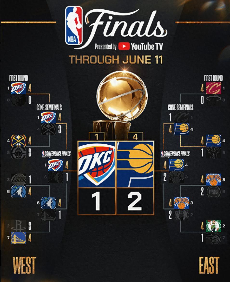 本賽季常規賽拿到68勝的雷霆在總決賽中1-2落後於常規賽50勝的步行者,前三場比賽的走勢很多人都沒有料到,G1步行者落後15分逆轉(0.3秒準絕殺),G2步行者落後9分逆轉,68勝的雷霆似乎不會打關鍵時刻。
