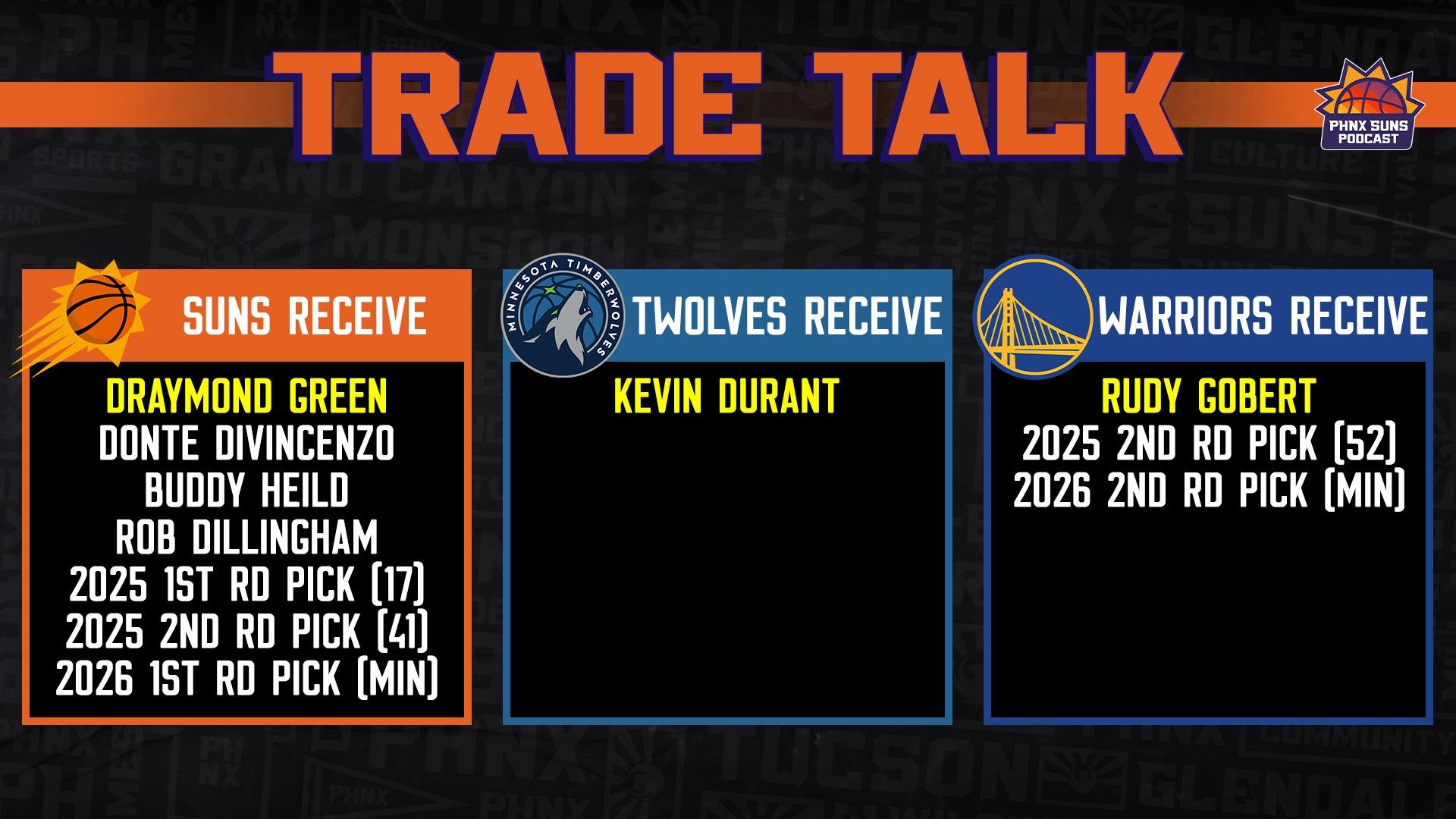 太陽得到:德雷蒙德-格林、迪溫琴佐、巴迪希爾德、迪林厄姆、2025年17號籤(森林狼)、2025年41號籤(勇士)、2026年森林狼次輪籤;