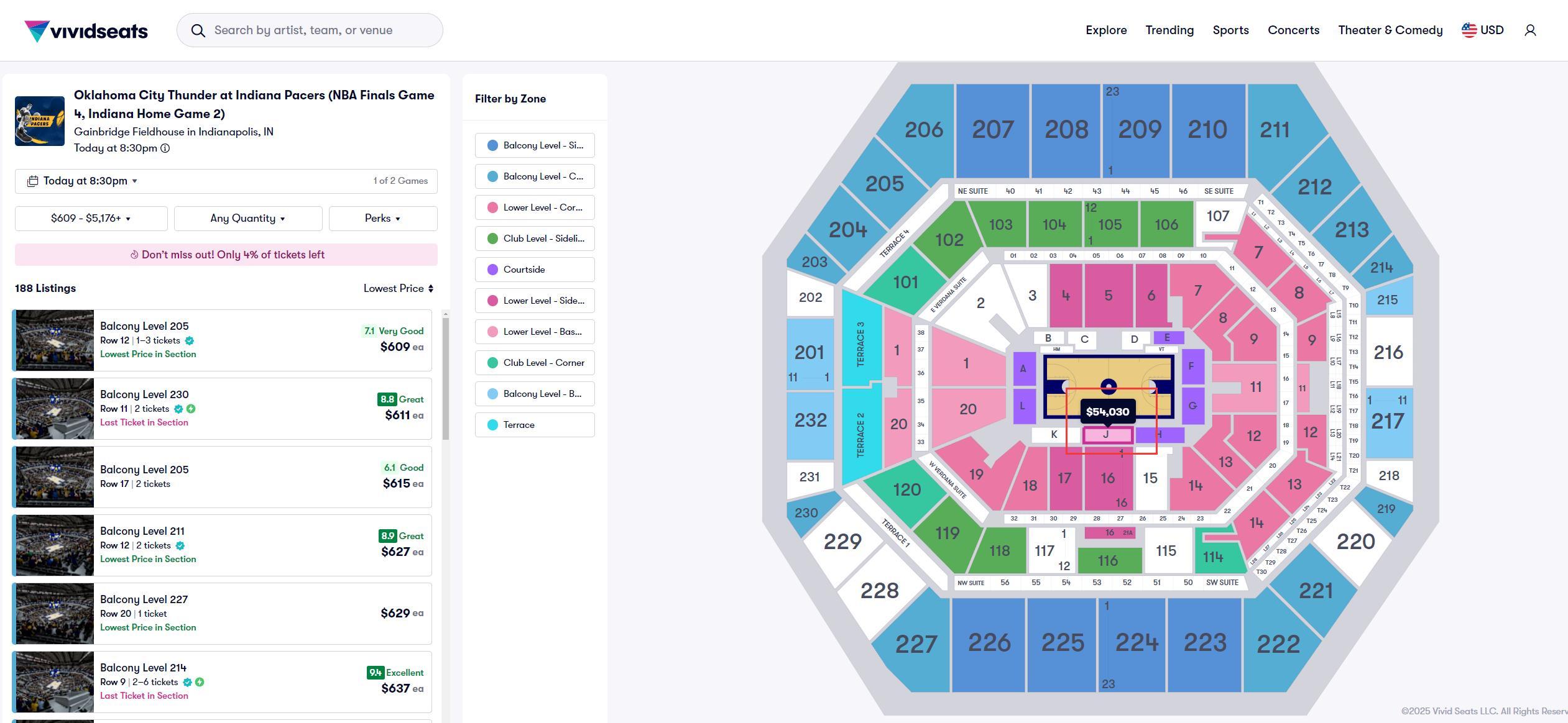 這場比賽步行者最貴的一個VIP包廂一張票高達5.4萬美元,G3這個包廂的票價爲2.9萬美元,這個漲幅是不是相當恐怖?雖然今年總決賽的收視率暴跌,可印第安納波利斯賺的盆滿鉢滿,步行者球迷們都期盼NBA隊史第一個總冠軍。