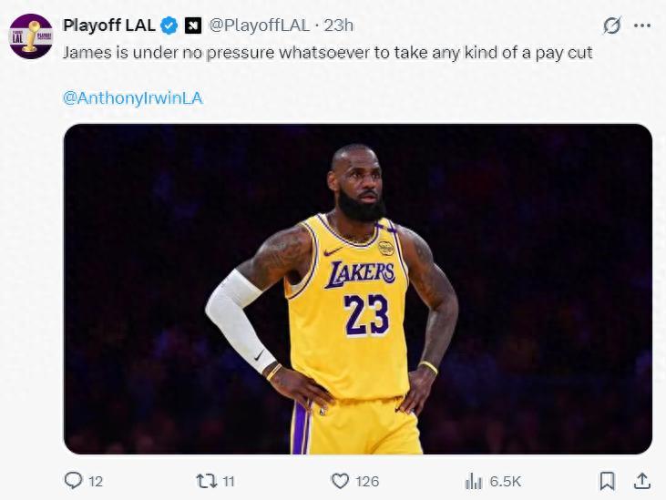 北京時間6月13日,湖人隊記 安東尼-勞瑞恩爆料,勒布朗-詹姆斯沒有任何的大幅減薪的打算,他的團隊正在考慮跳出球員選項重新簽下一份新合同。