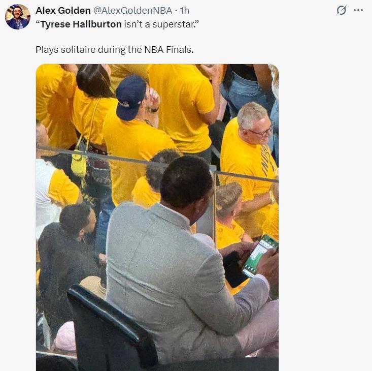 說哈利伯頓不是超級巨星的斯蒂芬-A-史密斯在比賽現場玩紙牌遊戲被抓。