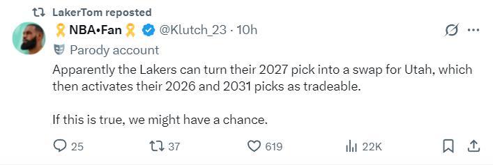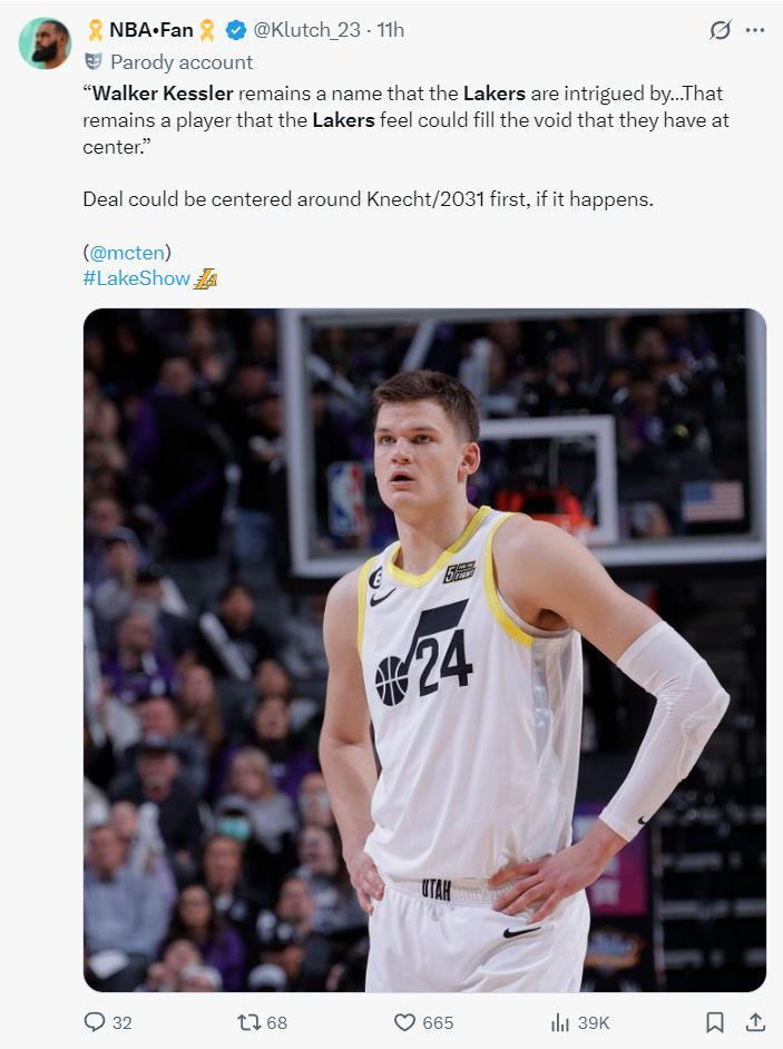 湖媒NBA Fan湖人要交易得到凱斯勒並非不可能,湖人只要取消2027年首輪保護(前4順位保護在爵士隊),那麼湖人2026年首輪與2031年首輪就可以被交易,如果湖人真的要換來凱斯勒,我們下賽季真的有機會。