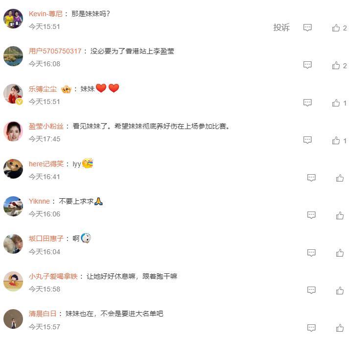 不過很多球迷都呼籲讓李盈瑩繼續養傷,讓李盈瑩好好休息更好,沒必要爲了香港站的比賽讓還沒有康復的李盈瑩登場。