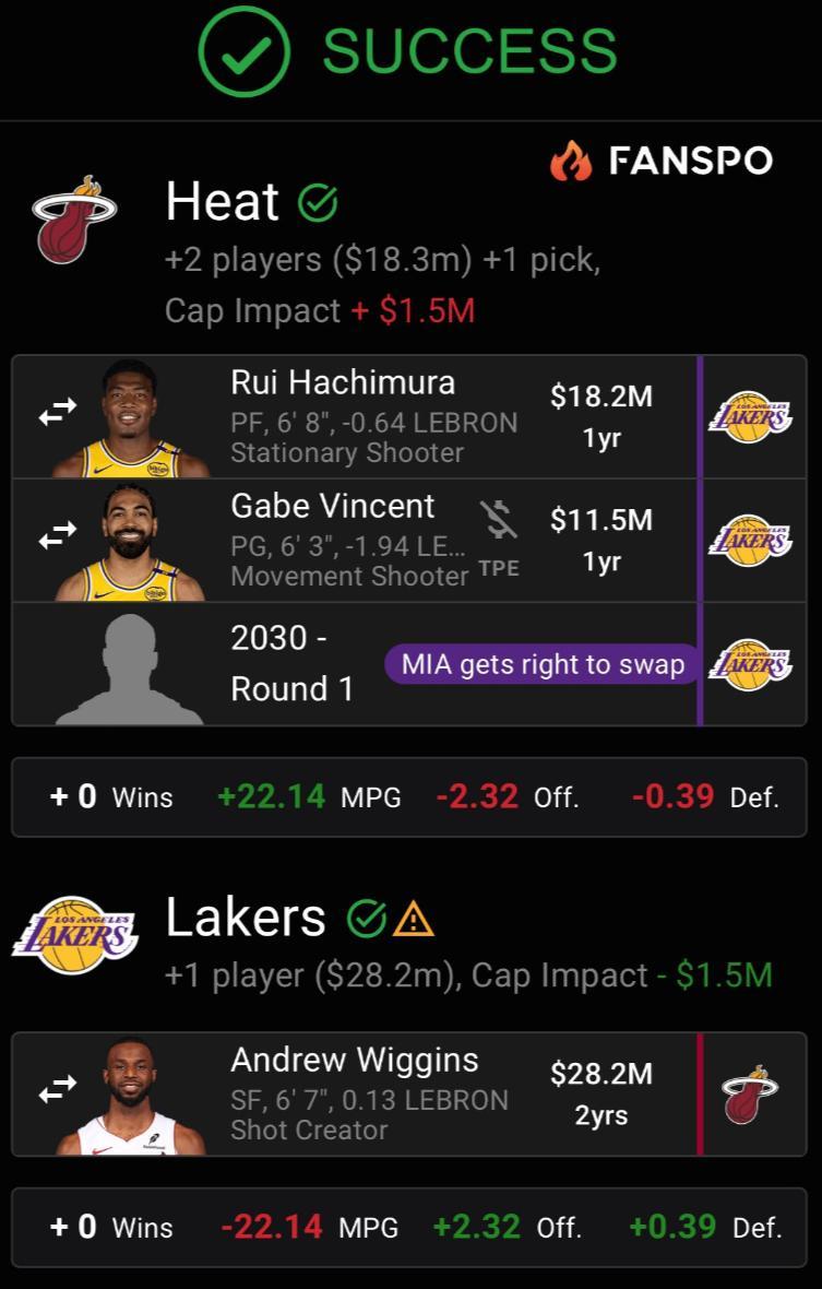 湖人用文森特、八村壘、2030年首輪互換換來維金斯打湖人先發。