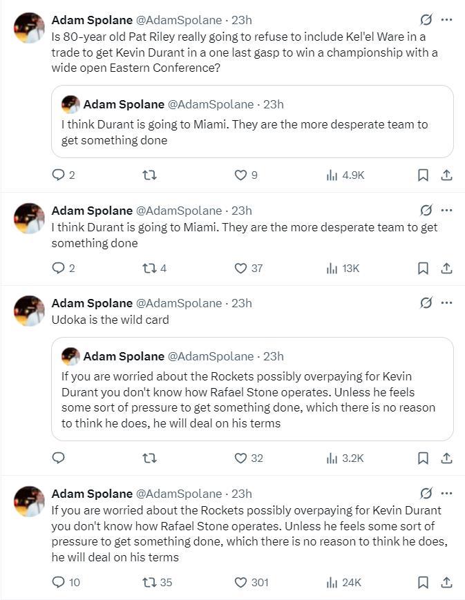火箭隊記Adam Spolane透露,如果你覺得斯通會在KD的交易中出高價,那麼你肯定不瞭解斯通的行事風格。