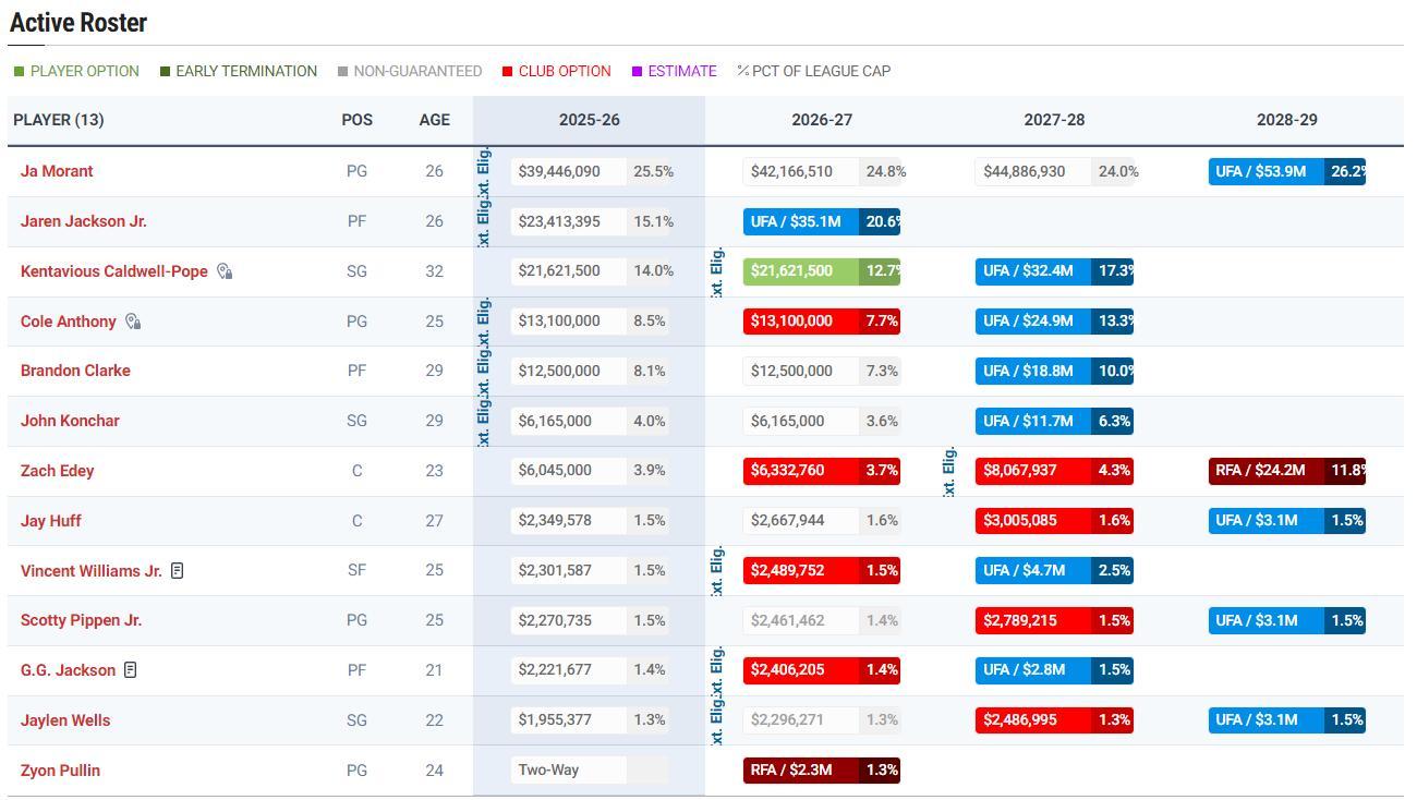 灰熊這筆交易後是12+1名單(雙向合同),這12人的薪水高達1.92億,已經超過奢侈稅起徵點1.879億,但是比二奢線2.078億還有一定的距離,灰熊還可以用底薪、中產特例來完成15人大名單。
