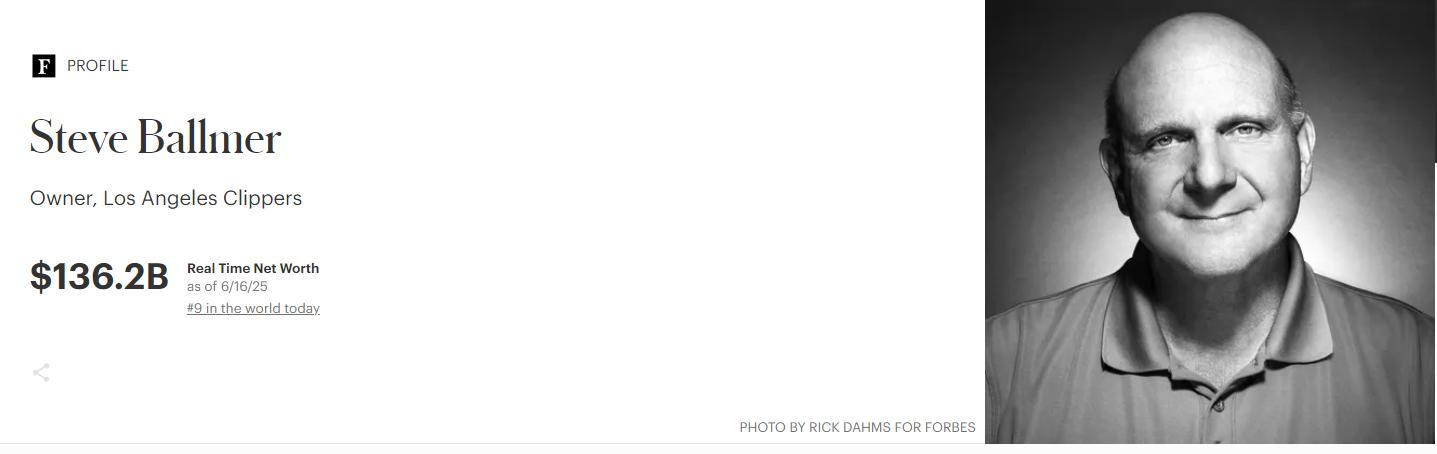 快船老闆史蒂夫-鮑爾默是NBA最著名的超級富豪,他的身價已經達到1362億美元,所以他多年來不惜奢侈稅各種補強陣容,比如交易截止日換來博格丹諾維奇、簽下本-西蒙斯等,他爲了幫助球隊奪冠想要交易得到杜蘭特也無可厚非。
