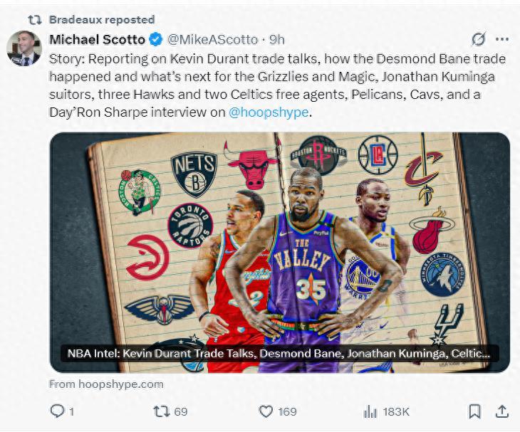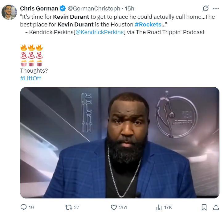 在邁克爾-斯科特的報道後,《今日美國》火箭記者本-杜博斯報道,如果杜蘭特與火箭的交易成行,那麼火箭隊潛在的籌碼不會太少。