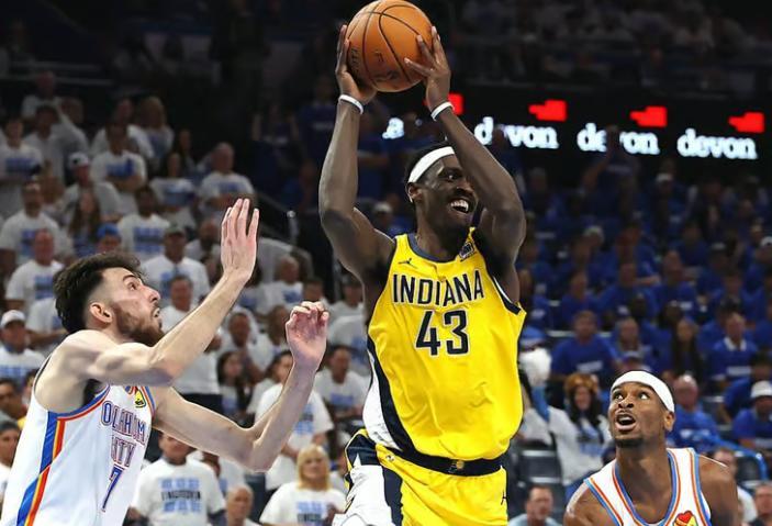 第二節哈利伯頓繼續隱身,哈利伯頓的右腳還有一些不適他完全沒有突破的能力,加上哈利伯頓外線不進,雷霆開始包夾西卡,次節西卡是5中1+三分2中0只拿到4分3籃板1助攻1搶斷,半場西卡10分4籃板3助攻1搶斷4失誤。