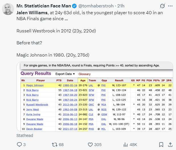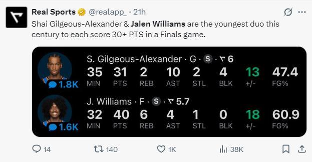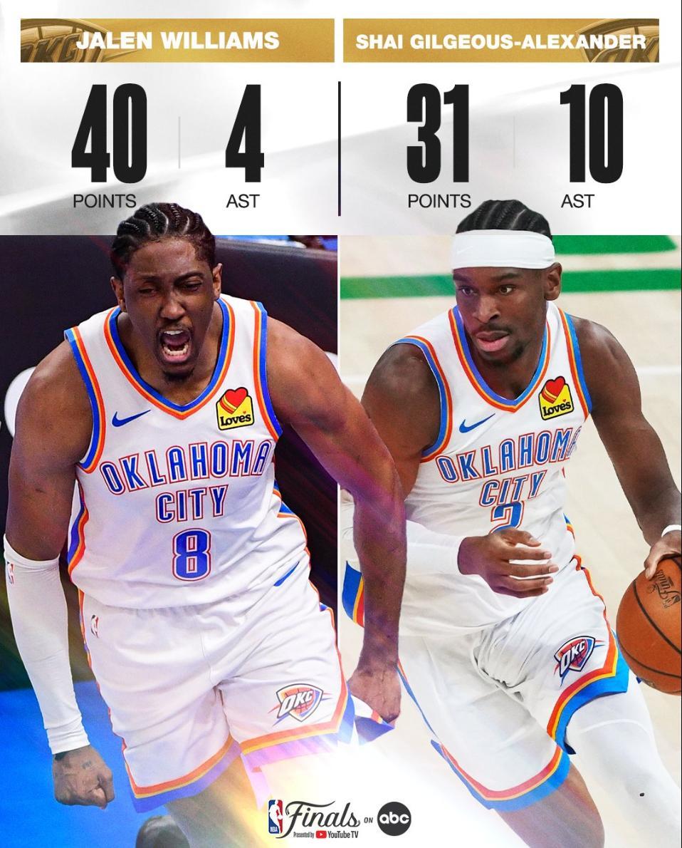 5.傑威與SGA一同拿到30+,NBA歷史最年輕的總決賽30+組合;