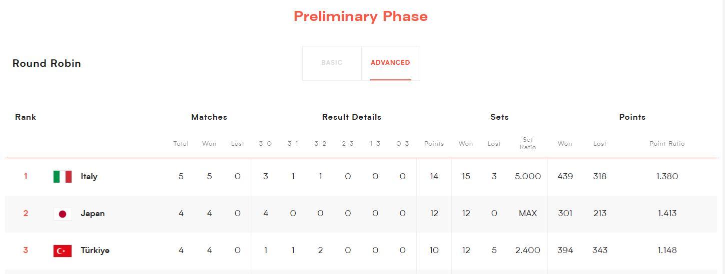 意大利女排是第二週首支贏球的球隊,所以意大利女排完成五連勝後總積分14分登頂積分榜,目前也就意大利、土耳其、波蘭三支球隊全勝,意大利女排作爲世界第一是真的很強悍。