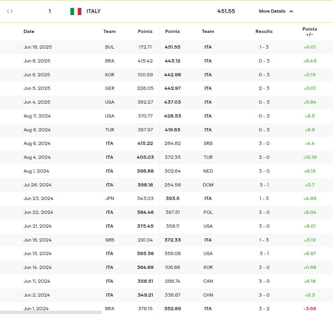 自2024年6月2日起意大利女排在國際賽場就沒有輸過球,這期間意大利女排豪取19連勝,2024年6月2日-2025年6月18日,也就是連續381天沒有輸過球了,這支世界第一的意大利女排實在是過於強悍。