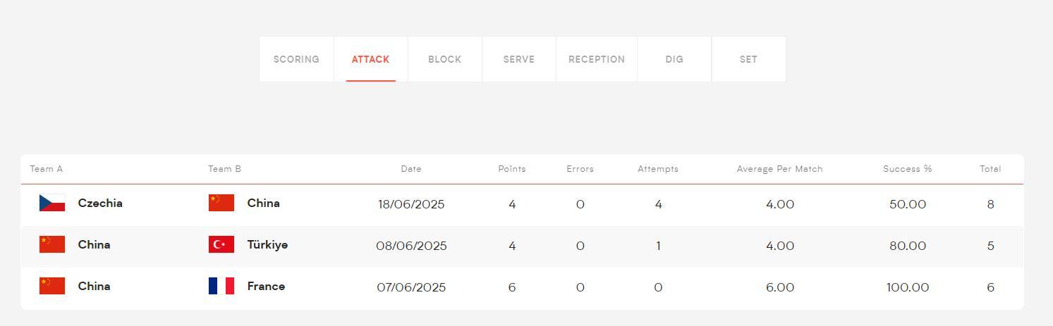 王奧芊的特點就是很擅長進攻,但她的軟肋就是攔網,三場比賽王奧芊沒有任何一次攔網得分,不過三場比賽她19扣14中,扣球成功率73.7%,進攻成功率很高。
