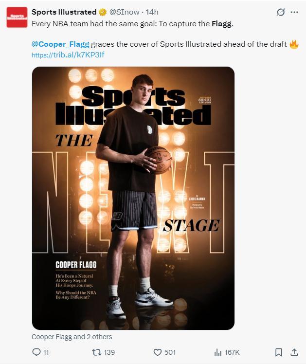 弗拉格在一天之前剛剛登上了《體育畫報》的首頁,看起來全美的媒體都已經知道那個衆所周知的“結果”,6月25日選秀大會必然是弗拉格之夜。
