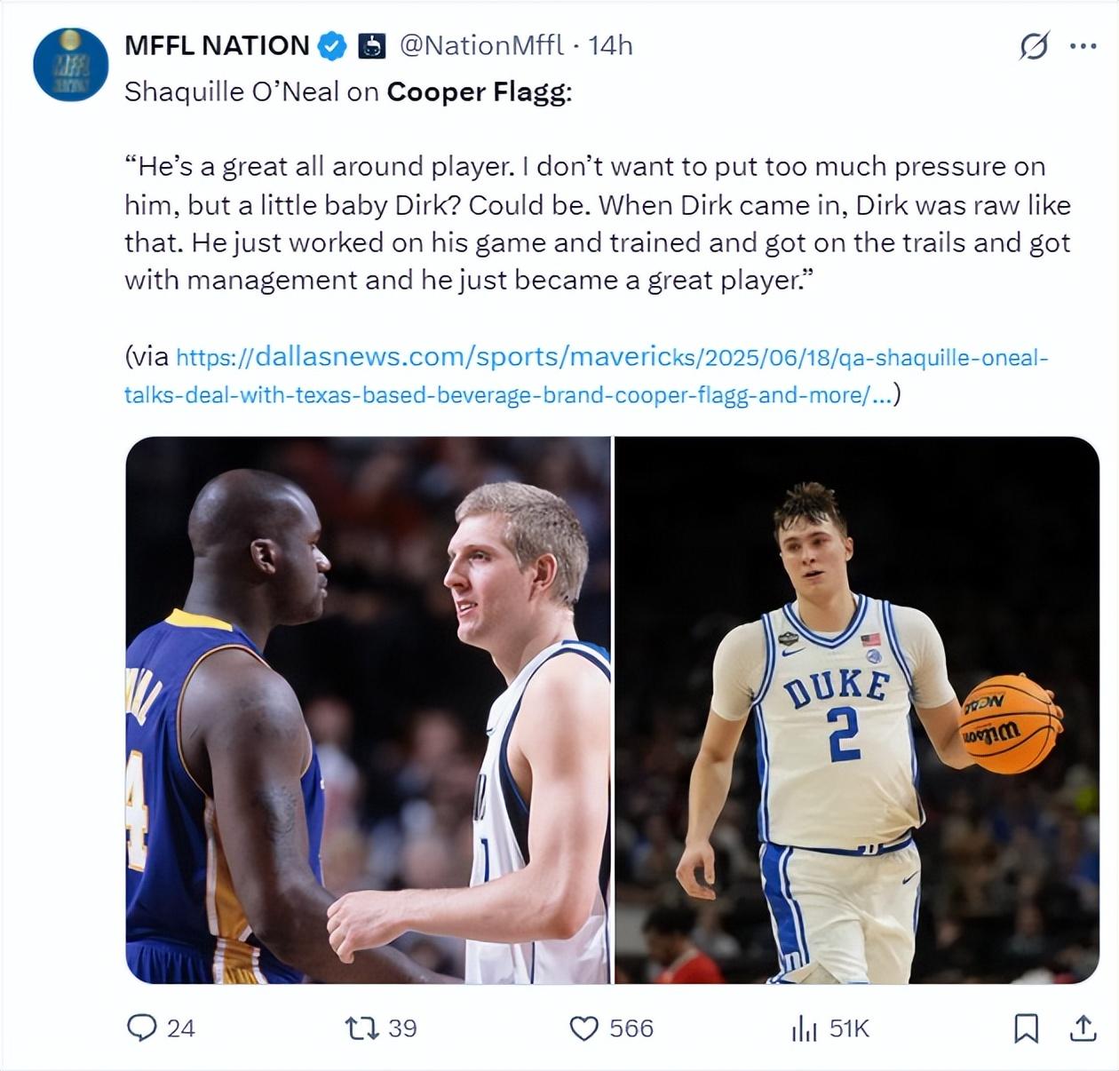 奧尼爾評價弗拉格時這樣說道:“他是一位全能型的選手,我不想給他太大的壓力,但你們說他是體型更小的諾維斯基,我覺得也有可能,當德克初次來到達拉斯他的球技還很稚嫩,他只是專注於提升自己的球技、積極 參與比賽、保持與管理層溝通,就這樣德克成長爲一名出色的球員。”